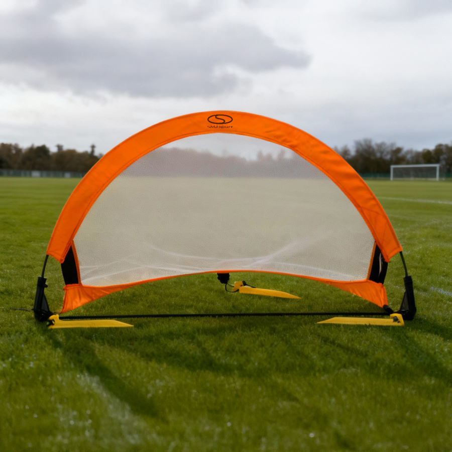 - Bramka treningowa SMJ sport typu pop-up 76×45×45 cm, kolor pomarańczowy. Składana, lekka, z 3 kotwicami do mocowania w ziemi. Idealna do treningów i rekreacji.