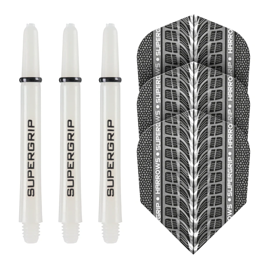 Harrows Twin Pack shafty Supergrip + piórka Supergrip (white)