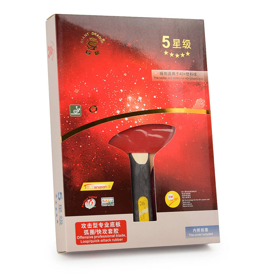 • Rakieta do tenisa stołowego GIANT DRAGON 5* pozwoli Ci wyprowadzać potężne, agresywne ataki zarówno podczas meczów treningowych, jak i turniejów o tytuł.