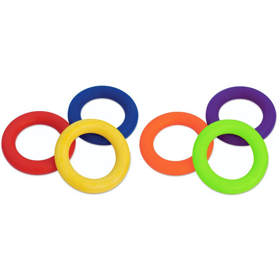 Zestaw 6 ringo do rzucania i łapania, wykonanych z miękkiego PVC. Bezpieczne i elastyczne, idealne do wszechstronnych zabaw ruchowych, ćwiczeń zręcznościowych oraz gier zespołowych. Doskonałe do wykorzystania w szkołach, klubach sportowych i na zajęciach ogólnorozwojowych.