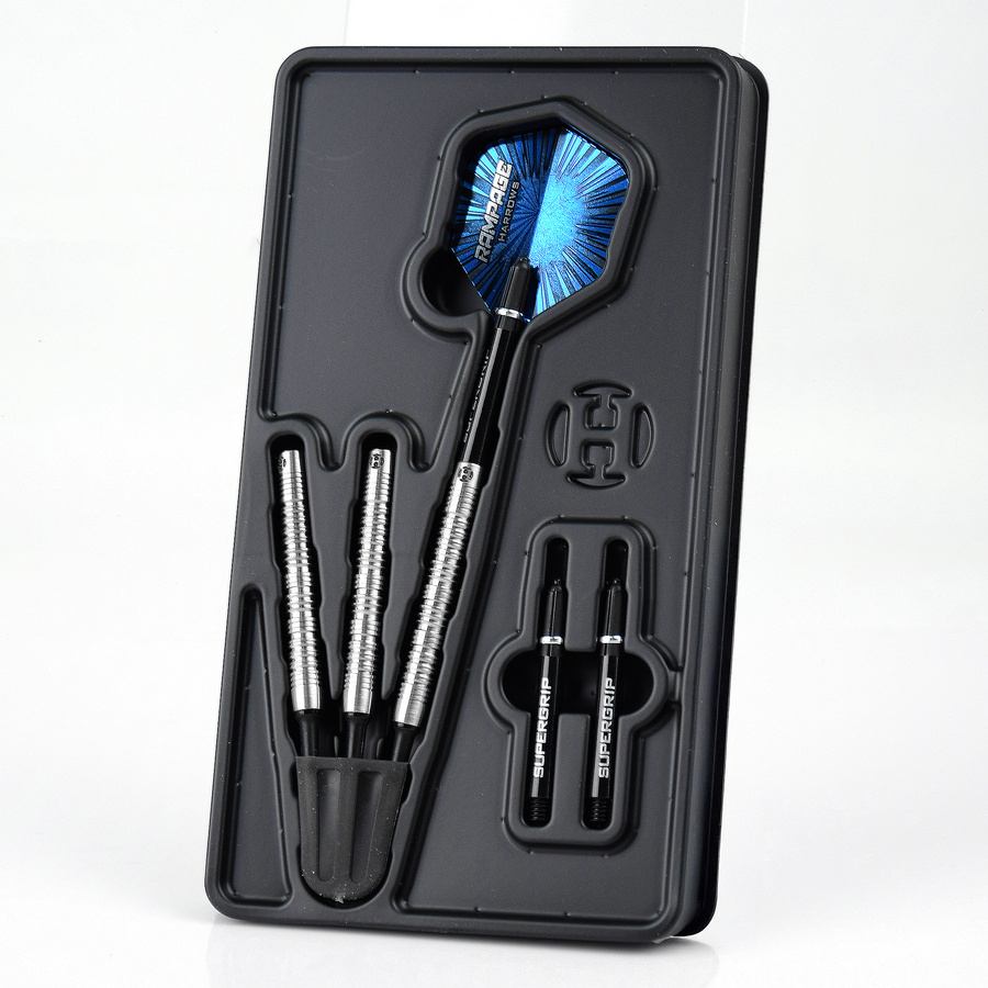 Rampage Soft Tip to rzutki z premium wolframu o krótszym barrelu (50 mm), stworzone do gry na tarczach elektronicznych. Smukła konstrukcja i agresywny grip zapewniają pewny chwyt, stabilność i pełną kontrolę przy każdym rzucie.