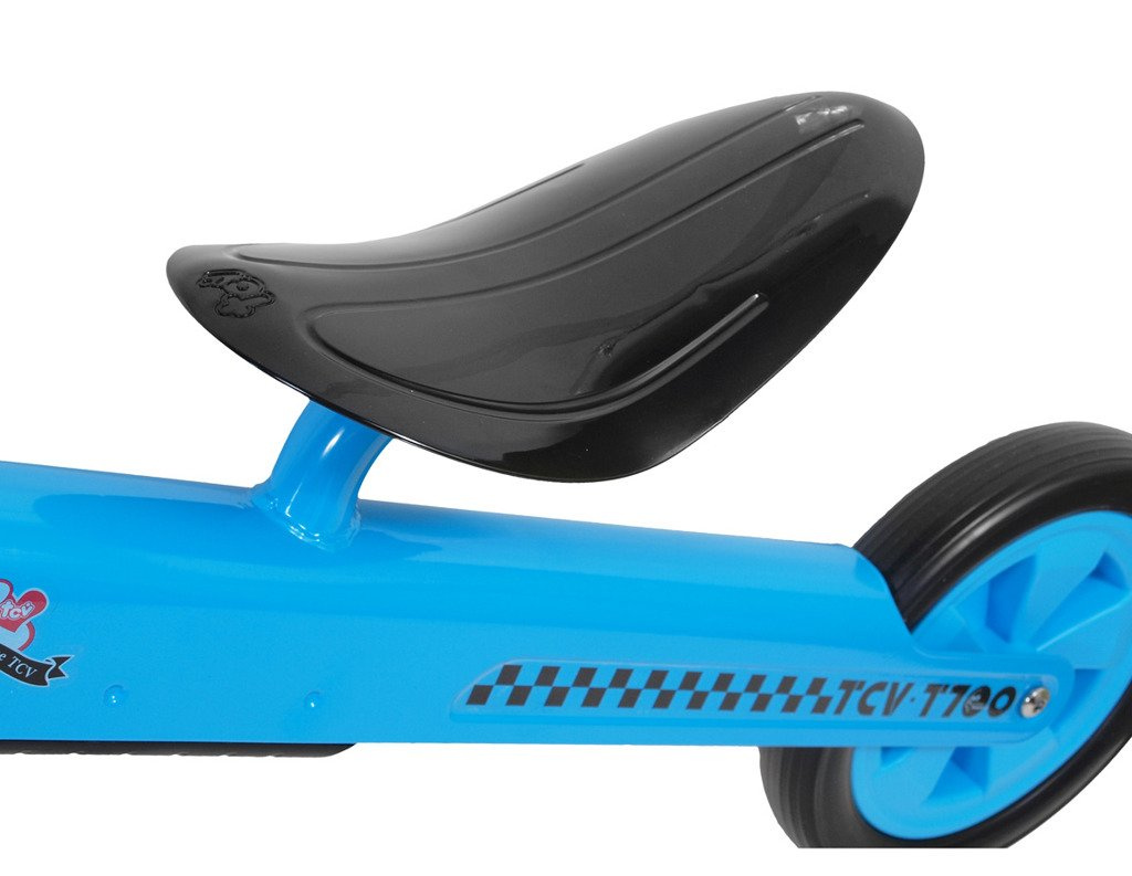 Model TCV-T700 to rowerek biegowy, który sprawdzi się w domu i na świeżym powietrzu. Koła piankowe zapewniają cichą jazdę, a solidna konstrukcja daje pewność bezpieczeństwa. Dzięki wąskiej budowie z wysuniętym przednim kołem dziecko ma pełną swobodę ruchów, bez ryzyka zahaczenia stopą o ramę lub koło. To idealny pierwszy krok w rowerowej przygodzie malucha.