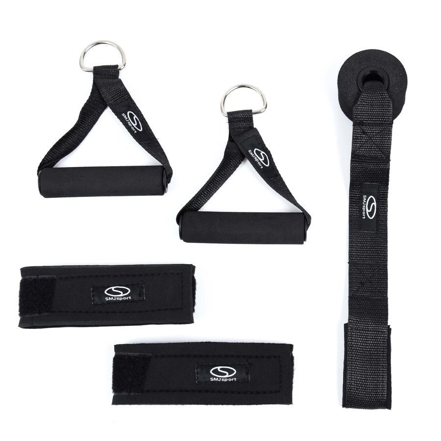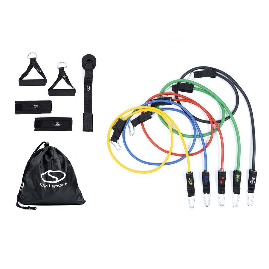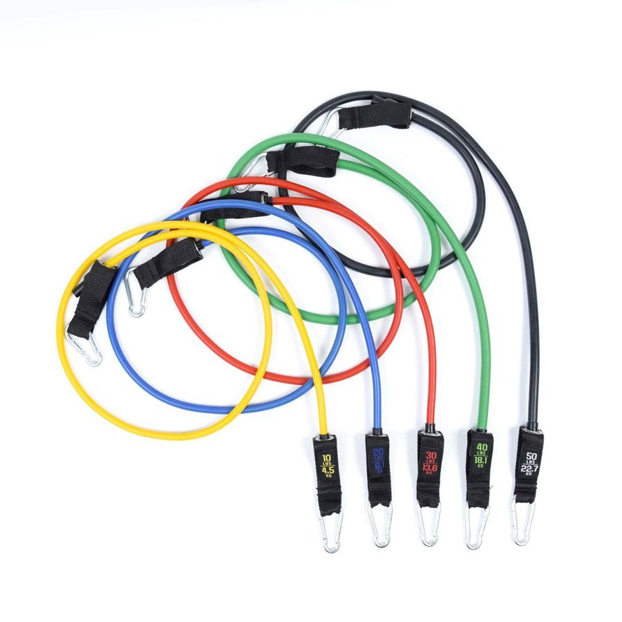 - Zestaw ekspanderów z 5 gumami o oporze 4,5–22,7 kg. W komplecie uchwyty, opaski na kostki, kotwica do drzwi i pokrowiec. Idealny do ćwiczeń całego ciała w domu i podróży.