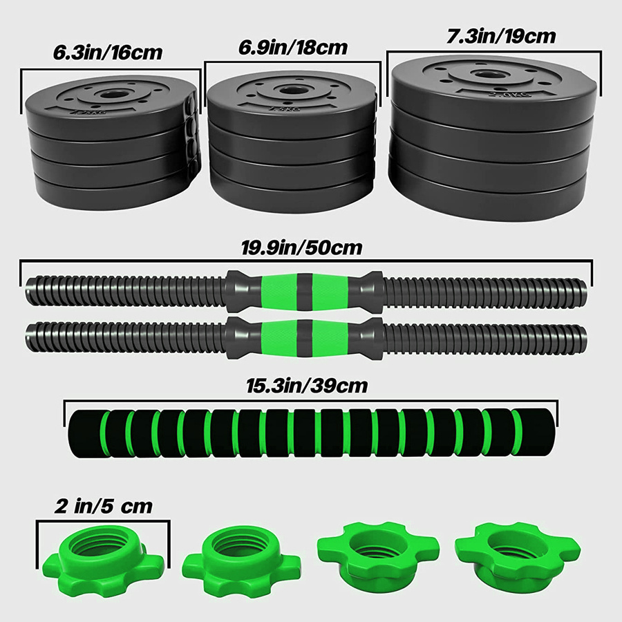 Zestaw hantli z drążkiem łączącym do sztangi – regulowany